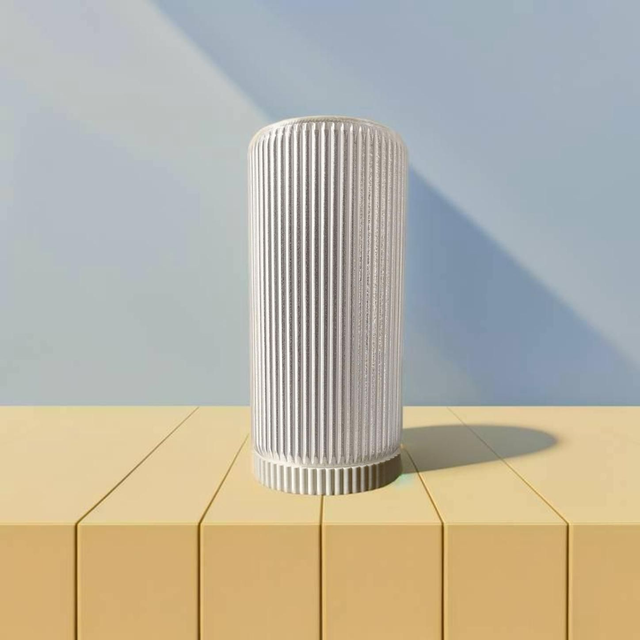 Diese elegante Tischlampe besticht durch ihr modernes und minimalistisches Design. Der zylindrische Lampenkörper ist mit feinen, vertikalen Rillen versehen, die nicht nur ästhetisch ansprechend sind, sondern auch für eine angenehme Lichtstreuung sorgen. Die Lampe steht auf einem stabilen Sockel und fügt sich nahtlos in jede moderne Wohnumgebung ein. Ideal für den Einsatz im Wohnzimmer, Schlafzimmer oder Büro, bietet diese Lampe nicht nur eine stilvolle Beleuchtung, sondern auch ein dekoratives Element, das jeden Raum aufwertet.